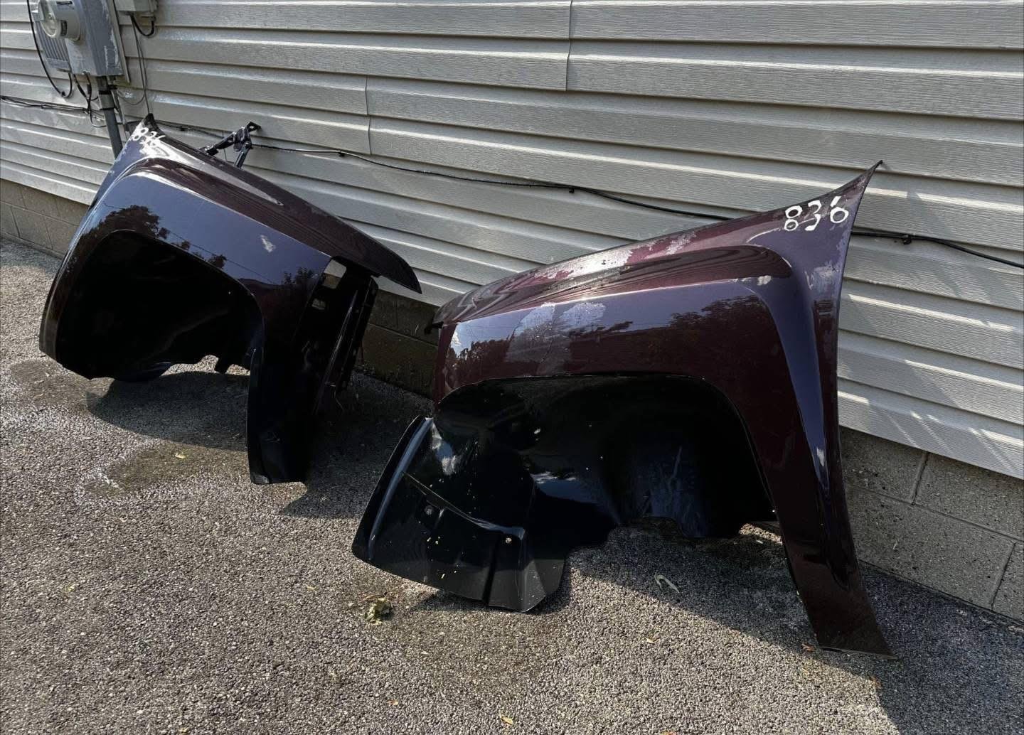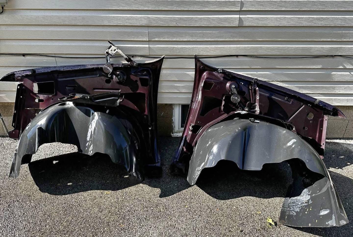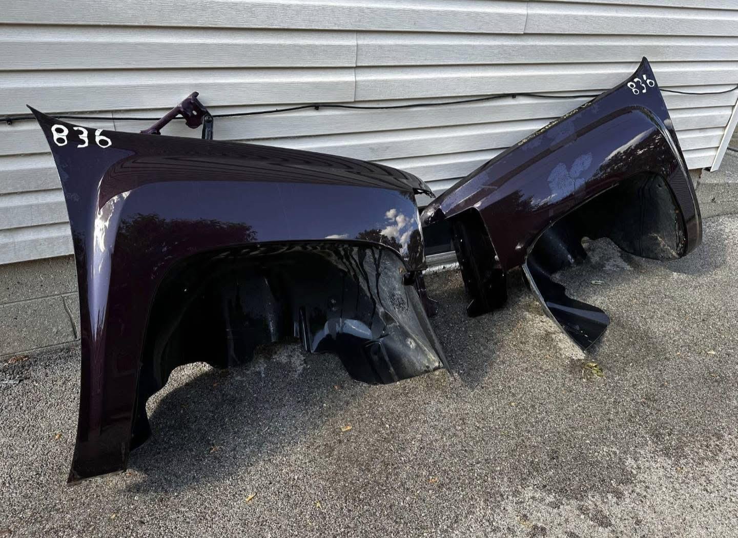 These fenders were removed from a 2010 Chevy Silverado long bed with only 77,694 km. They are completely rust free, with a solid structure that’s ready to install. The factory finish is Dark Cherry Metallic. The paint may show light surface scratches from normal use, but the panels remain in excellent condition overall.
